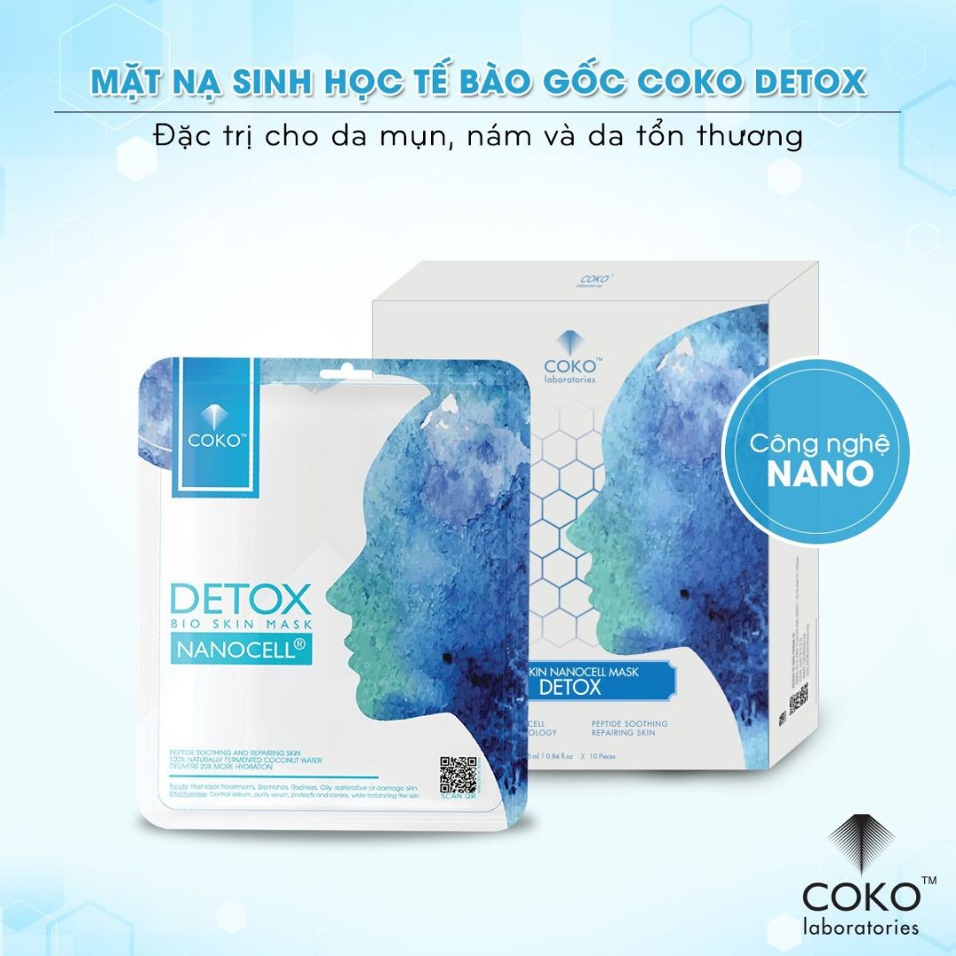 Mặt nạ sinh học tế bào gốc Coko Detox là một trong bốn sản phẩm thuộc dòng sản phẩm mặt nạ đắp mặt được sản xuất từ 100% nước dừa tươi thiên nhiên của công ty Coko Việt Nam. Sử dụng công nghệ nano sinh học kết hợp công nghệ tế bào gốc, mặt nạ giúp hồi phục da hiệu quả sau các liệu trình chữa trị như lăn kim, phi kim, lazer... Đồng thời có tác dụng làm dịu da bị tổn thương, an toàn, lành tính với mọi loại da, kể cả da nhạy cảm, bà bầu cũng có thể sử dụng.